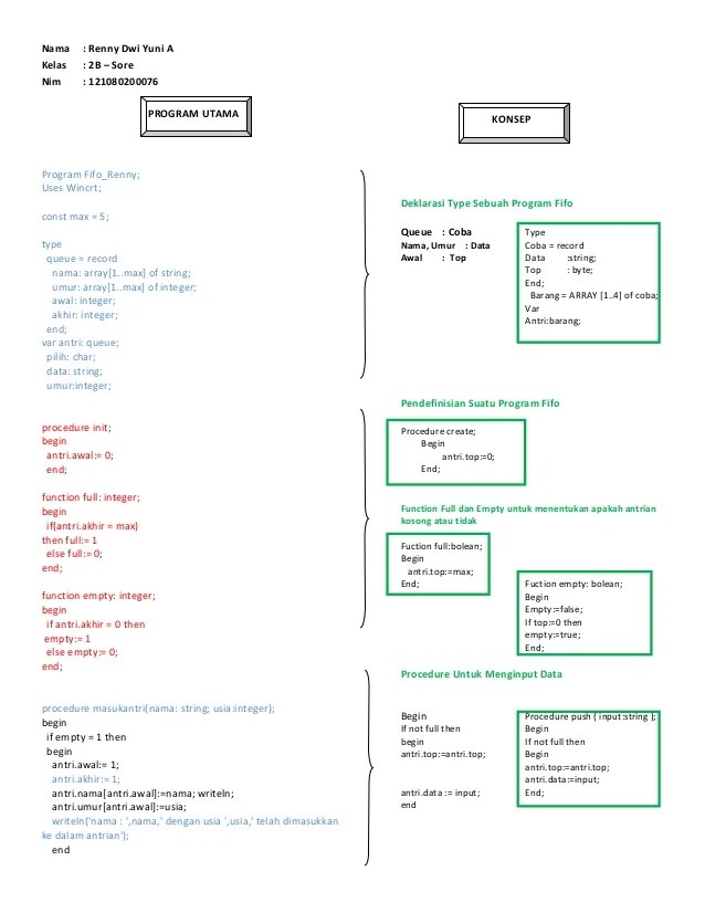 Isi yang saling berhubungan contoh penggunaan dlm fifo (queue) program fifo; . Linked list merupakan struktur data yang memiliki kelebihan dalam efisiensi memori dan kecepatan dalam menyisipkan data. Type siswa = record nama . Cara pembentukan type pada pascal : Oke…yang jadi fokus di postingan ini sebenarnya saya hanya ingin share contoh linked list dalam bahasa pascal.